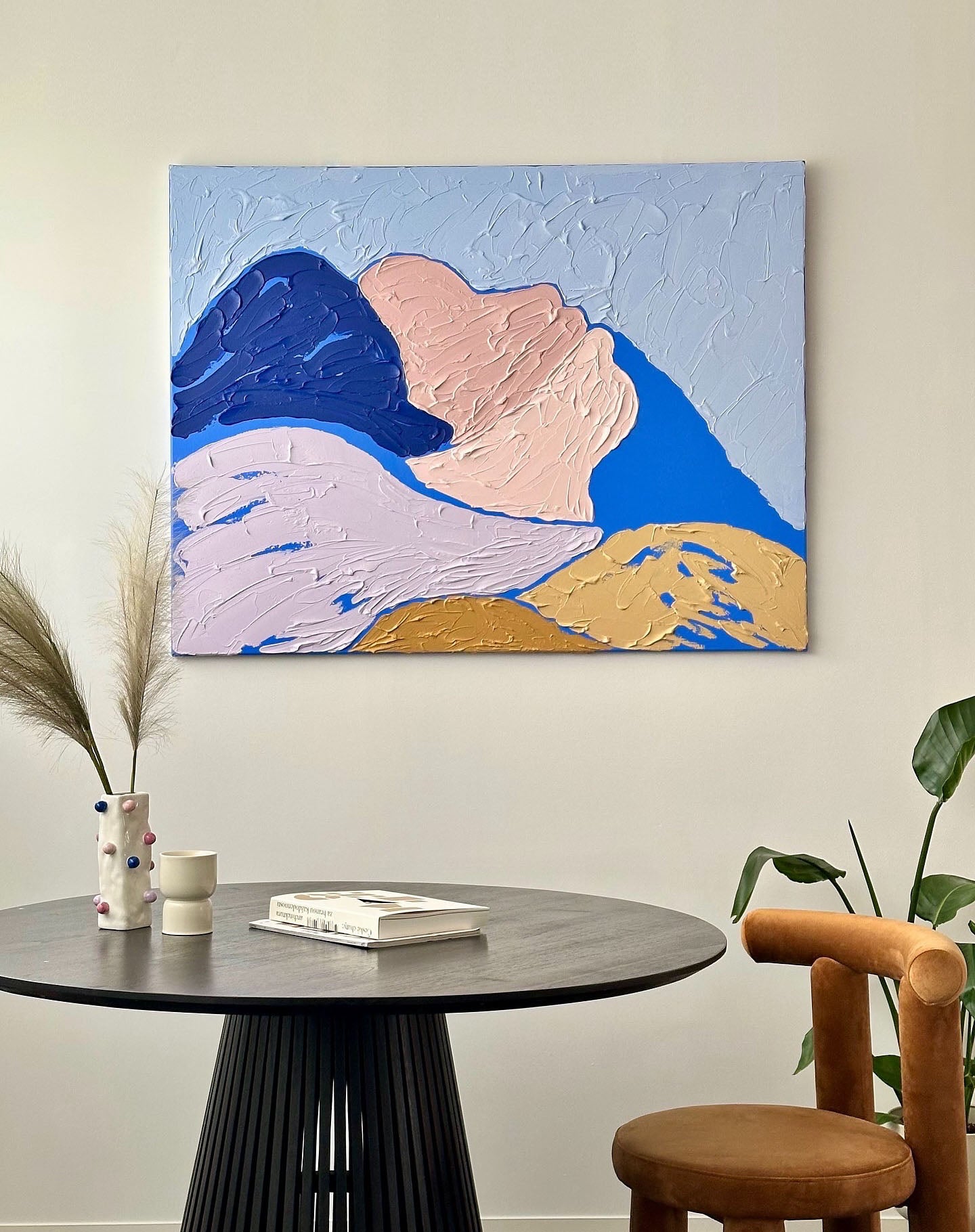 Meka creates her artwork using the 'thick-paint' technique, where acrylic paint is applied to the canvas in thick layers using a spatula. Meka is fascinated by the harmony of colors. Prefers clearly defined colors separated from each other. Each layer has its own, defined place. Her favorite subject is nature such as mountains, plants, animals partially combined with abstract elements.