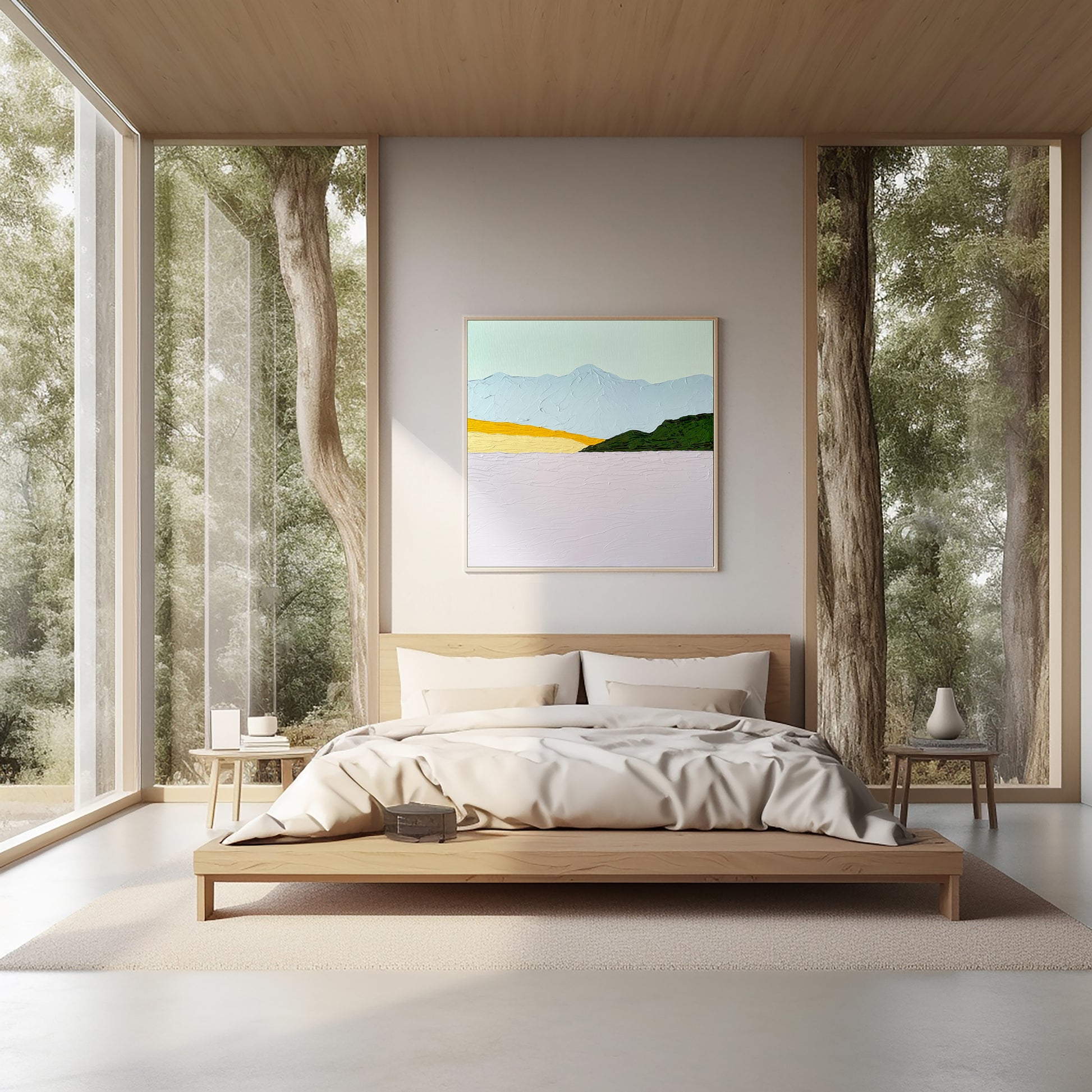 Meka creates her artwork using the 'thick-paint' technique, where acrylic paint is applied to the canvas in thick layers using a spatula. Meka is fascinated by the harmony of colors. Prefers clearly defined colors separated from each other. Each layer has its own, defined place. Her favorite subject is nature such as mountains, plants, animals partially combined with abstract elements.